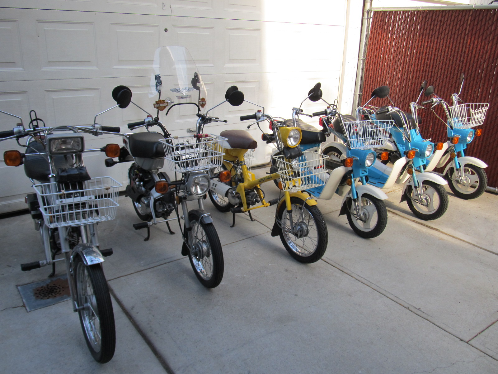 Hello, Welcome to my scooter/moped page!! Here are four different versions of the Honda Express line. Introduced to the US market in 1977. A 50 cc. 2-stroke engine and automatic transmission. All of my bikes are registered in New York State.