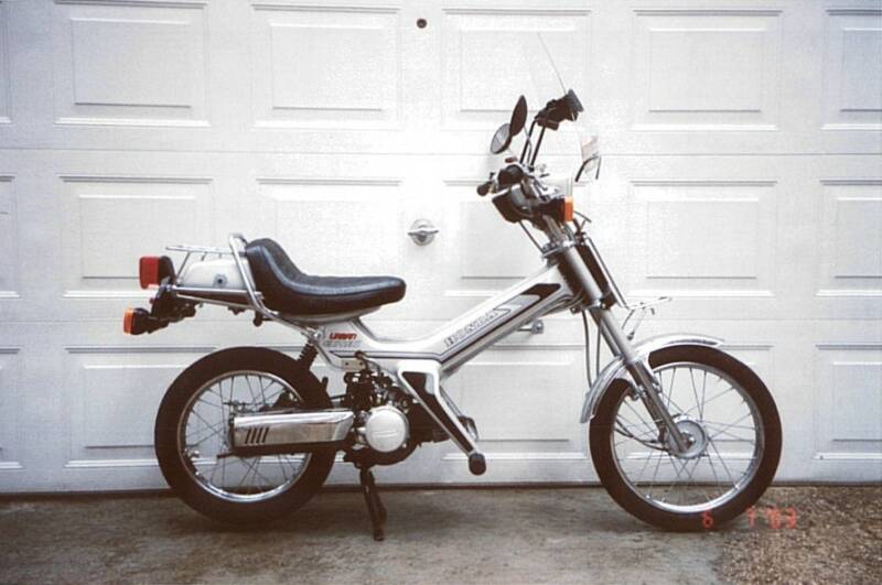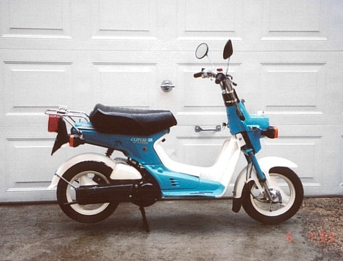 brake pads, brake light, head lamp, battery and carburetor. Currently it has a little over 1,300 miles. Everything works and I have done everything to make it a nicely restored machine. Some people call it a moped but it sure looks like a scooter to me. The serial number began JH2AB0402BS000007.