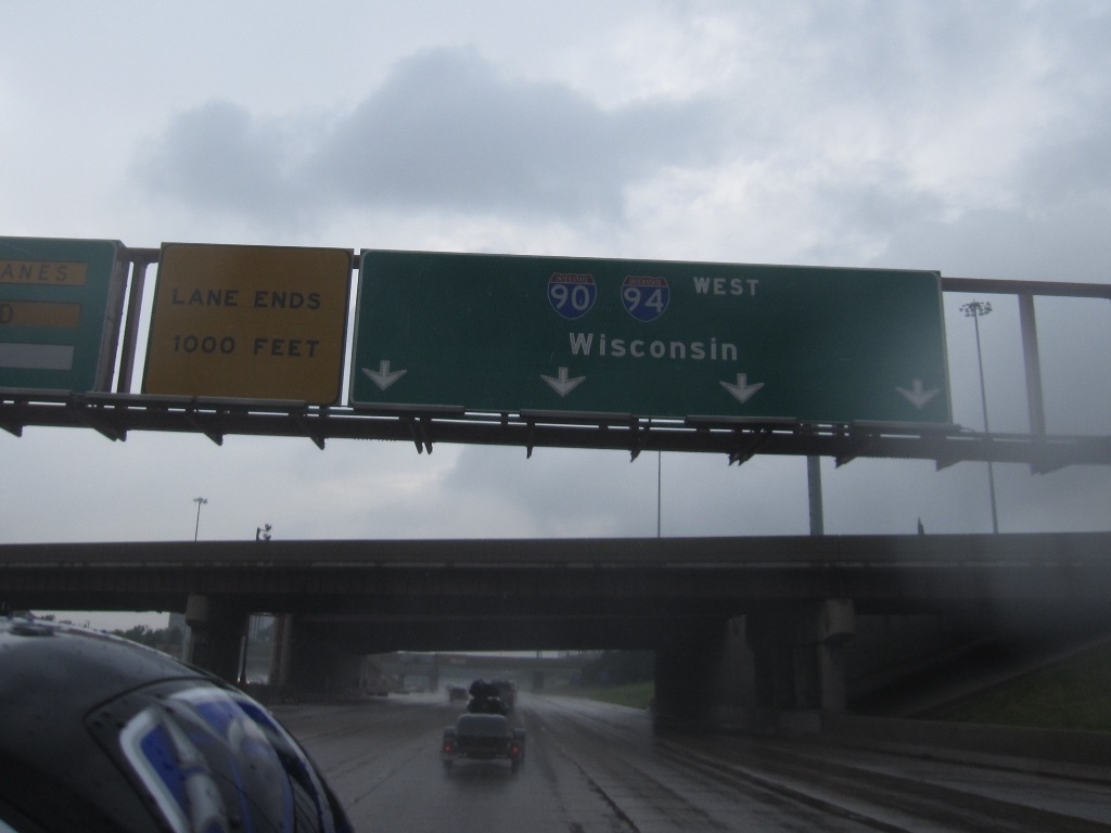 Chicago was left behind and now we are closing in on Wisconsin. It rained the whole day and we needed to find a place for the night but we do not like to stop in the big cities so we wait.