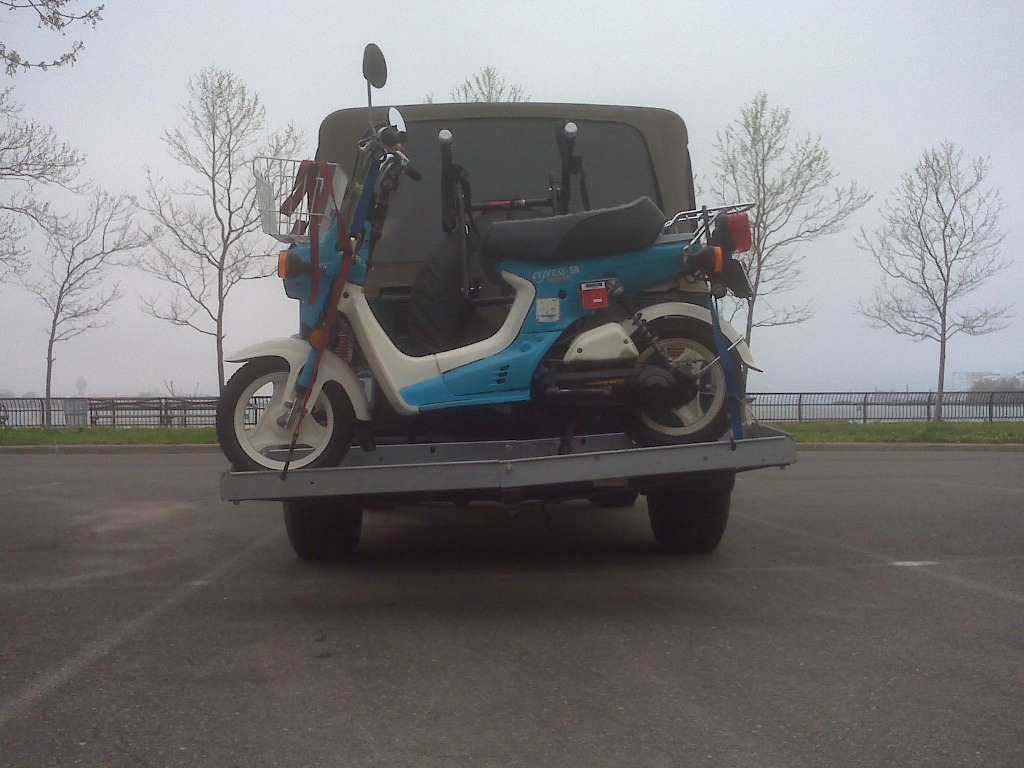 My beautiful 1981 Honda Express SR on the back of my Jeep, NY April-11-2011